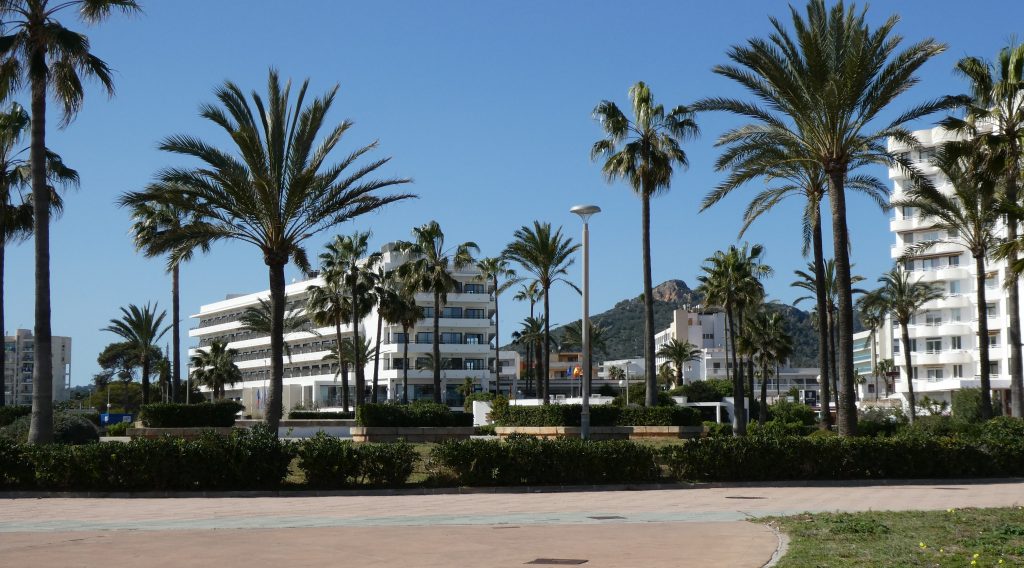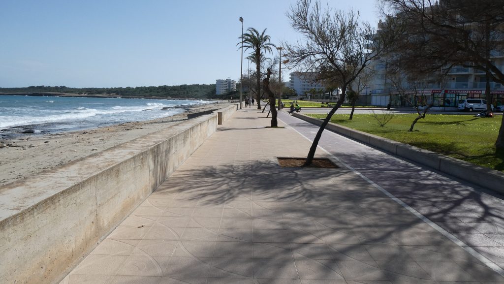 Wir machen uns am parc (Park) de sa Mar in Cala Millor auf den Weg, dessen östliche Seite an die Strandpromenade (39.594370, 3.384382) grenzt.
